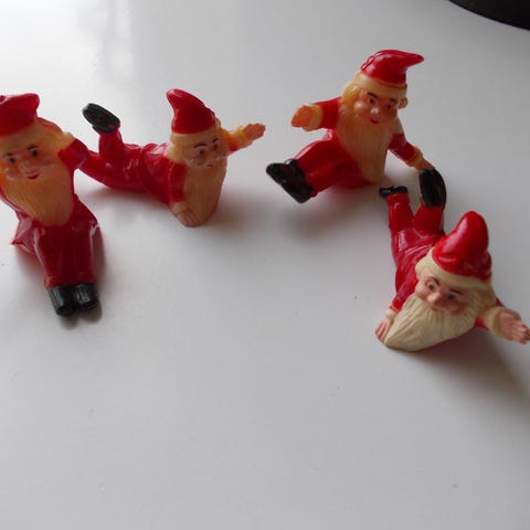 Små retronisser i hård plastik, julemanden med gave er ca 6,5cm høj.