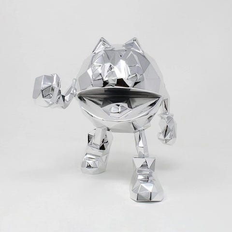 The Man of Steel får mega‑pixel behandling. Fuchs-duoen sprængte en vintage legetøjs-hoved op, indtil hver penselstrøg af fabriksmaling læser som popkulturarkæologi. Tænk retro-samler-stolthed + tysk storformat-precision = vægsstyrke, som kryptonit ikke kan røre ved.