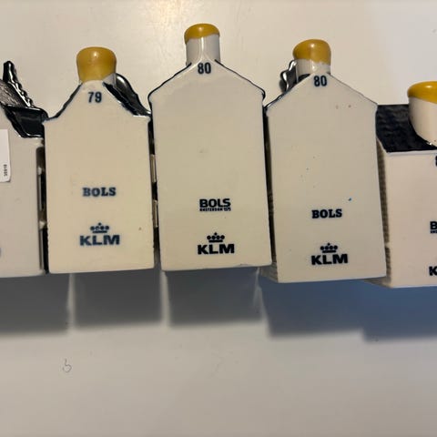 Femten KLM-huse i Delft-porcelæn fra 2002–2009, Holland, højde 9 cm, bredde 5 cm, dybde 5 cm, alle i fremragende brugstilstand med minimale tegn på slitage; nogle indeholder stadig Bols, andre er tomme pga. fordampning. Klik på den blå "gå til varen" knap, for at købe eller byde på denne vare. Den samlede pris vil blive vist inden du afgiver dit bud.