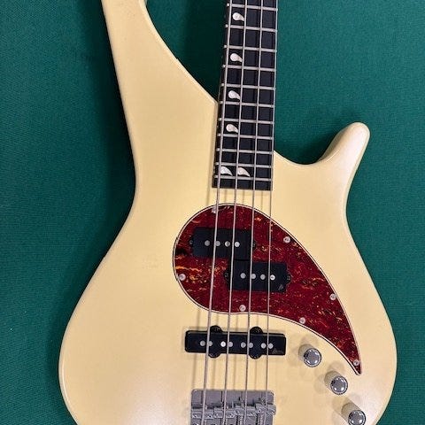 Brand ny Sage Guitars Custom Utilitarian-bass fra USA, vægt 4,5 kg, inkluderer gig bag, testet og fungerer, aldrig spillet, med en lille lakflager ved nederste bolt. Klik på den blå "gå til varen" knap, for at købe eller byde på denne vare. Den samlede pris vil blive vist inden du afgiver dit bud.
