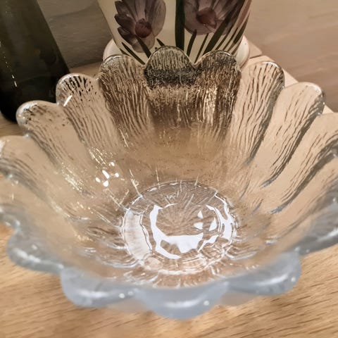 Endnu en i samme størrelse i ufarvet glas med få brugsspor,