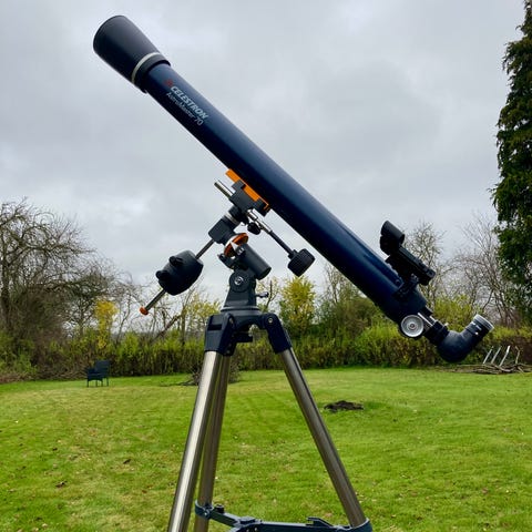 Denne kompakte og bærbare Maksutov-Cassegrain (90 mm åbning, 1250 mm brændvidde, f/13.8) leverer skarpe, kontrastrige billeder og er ideel til at observere månen, planeter og til jordobservationer (fuglekiggeri, natur).