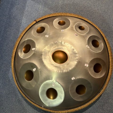 Pantastic D Kurd håndpan, fremstillet i 2025, i helt ny stand, vægt 5 kg, dimensioner 54×23 cm, stemt efter D Kurd-skalaen (D A, Bb, C, D, E, F, G, A) ved 440 Hz. Klik på den blå "gå til varen" knap, for at købe eller byde på denne vare. Den samlede pris vil blive vist inden du afgiver dit bud.