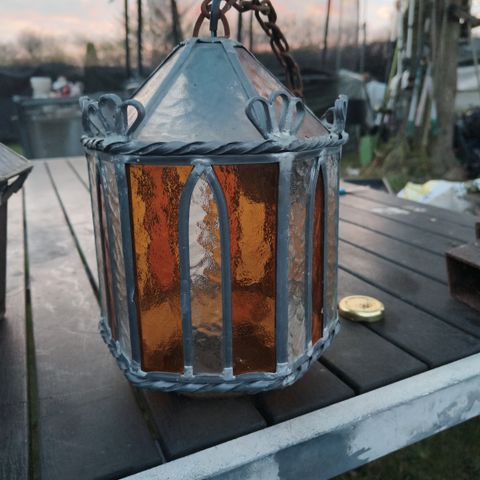 Fine gammel lampeskærm. Skal have en ledning og er gået delvist i den ene Samling. Ca 5kg