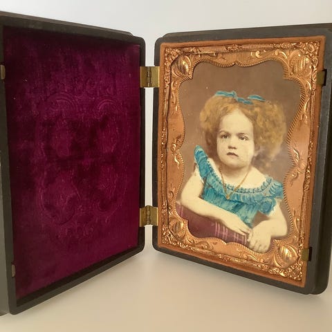 Sikkert håndkoloreret fotografi i fantastisk Art Deco ramme fra 1925-1940