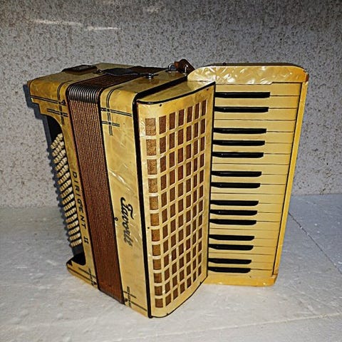 Barcarole model 9211 accordeon fremstillet i Tyskland, i fremragende stand, vejer 10 kg, 80 basknapper fungerer alle, kompression 100%, ingen luftlækage, inkluderer brede skulderstropper og en taske, testet og funktionel, 2–3 små ridser, ingen sprækker, serie 9211. Klik på den blå "gå til varen" knap, for at købe eller byde på denne vare. Den samlede pris vil blive vist inden du afgiver dit bud.