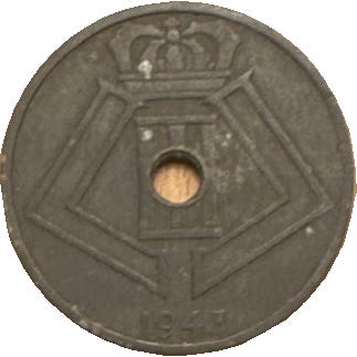 Gammel 25 centime mønt fra Belgien fra 1922.