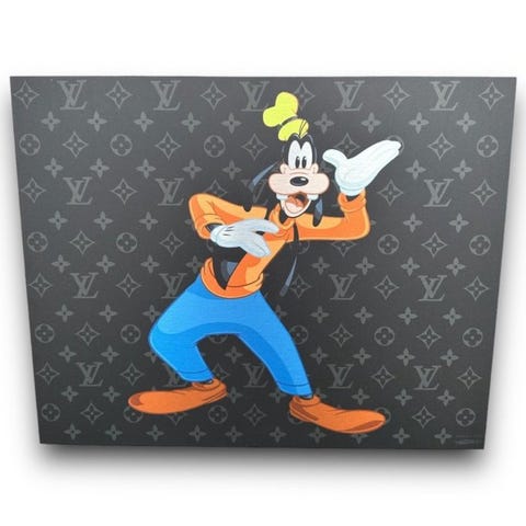 Dette popkunstværk viser Picsou siddende på en bjerg af poser fyldt med penge. Billedet inspirerer til luksus og succes.