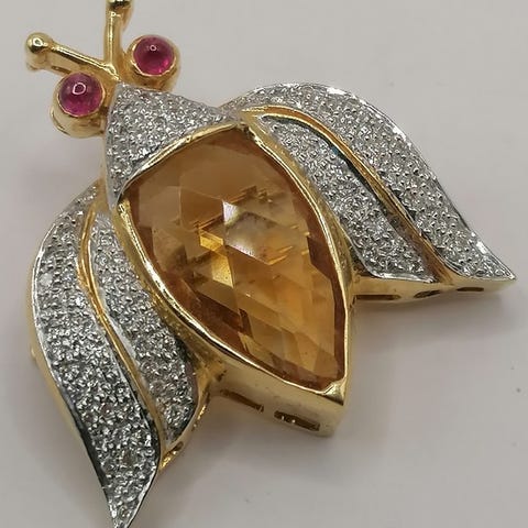 14K hvidguld 0,65 ct diamant og rubin sommerfuglebrosje