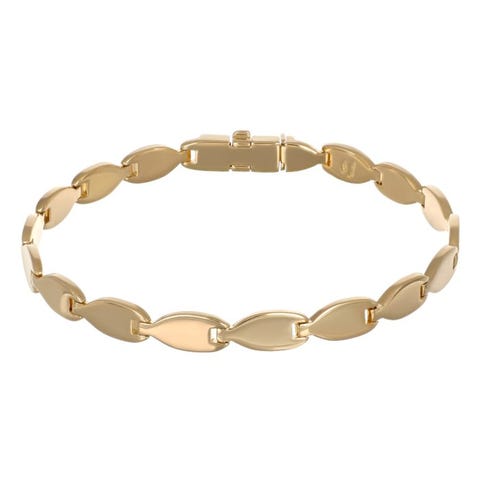 Armbånd i 18 karat guld i gule, hvide og rosaguld med kugler og terninger, vægt 2,7 g, længde 19 cm (justerbar fra 17 til 19 cm), model GOLD ART, fremstillet i Italien i Arezzo med 750-stempel og uden laboratorierapport. Klik på den blå "gå til varen" knap, for at købe eller byde på denne vare. Den samlede pris vil blive vist inden du afgiver dit bud.