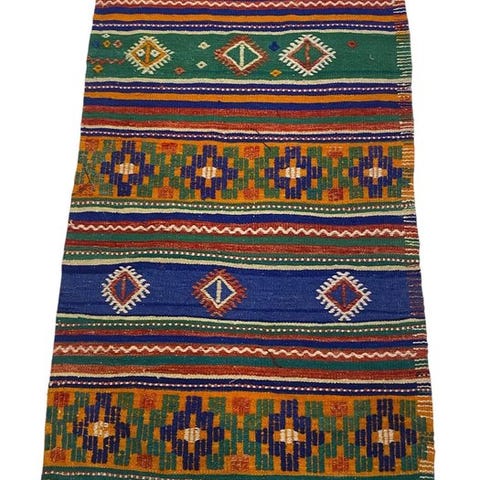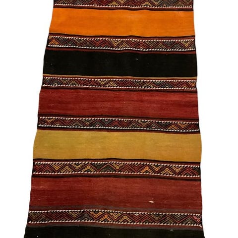 Dette er et fantastisk tyrkisk Usak Kilim lavet i 1940'erne til 1950'erne, en meget livlig tilføjelse til dit hjem fra hjertet af Anatolia. Kilims blev ikke kun brugt som praktiske genstande, men også som talismans for held, frugtbarhed og velstand i Anatolia i tusind år. Du kan få en del af denne unikke historie ind i dit hjem!