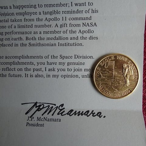 Apollo 11 - 50-års medaljon - Blandt med flyvet metal, der gik til Månen.