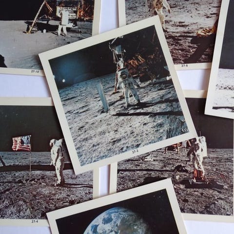 Apollo 11 50-års jubilæumsmedaljon med metal fra månen, i nærmest ny stand. Klik på den blå "gå til varen" knap, for at købe eller byde på denne vare. Den samlede pris vil blive vist inden du afgiver dit bud.