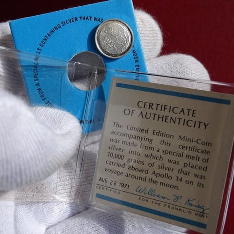 Medaljonen indeholder metal, der er fløjet med Apollo og fløj til månen!
