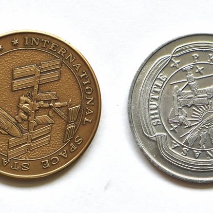Dette er en historisk medalje. Denne 4 cm i diameter to-sidede medalje inkluderer Apollo-fløjet metal!