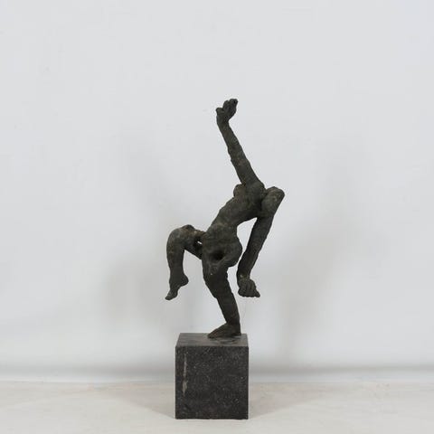 Bronzeskulptur med titlen Figuur af Harry Storms (1945), oprindelig fra Nederlandene, ikke underskrevet og i god stand, mål 100 cm høj, 20 cm bred og 15 cm dyb. Klik på den blå "gå til varen" knap, for at købe eller byde på denne vare. Den samlede pris vil blive vist inden du afgiver dit bud.