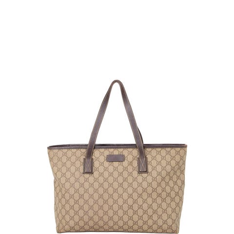 Gucci Off The Grid duffle bag i grå GG monogram med beige læderdetaljer.Tasken kombinerer luksus med funktionalitet og er perfekt til weekendture, træning eller som carry-on på rejsen.