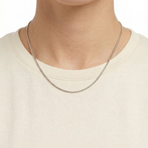 Slangekæde halskæde i 14K hvidguld med en diamant (0.25 ct)