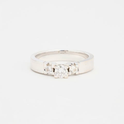 Trestensring i 18K hvidguld med diamanter (0.97 ct), Str.