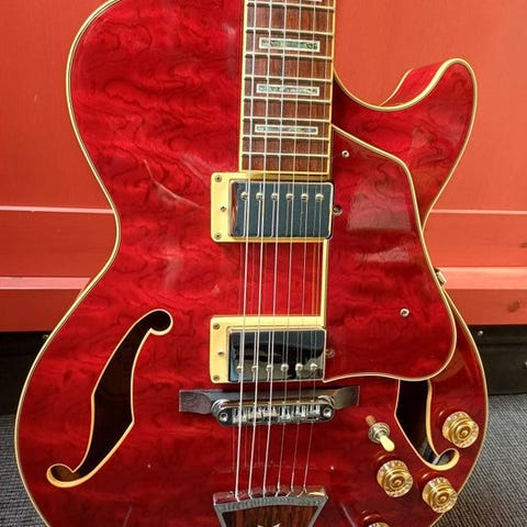 Meazzi Old Jazz Hollywood, en italiensk hulleguitar fra Meazzi fra 1960, cirka 4 kg, i god stand, testet og funktionsdygtig, 100% original med nyslebet funklende iført hals og elektronikken i god stand, ingen tilbehør. Klik på den blå "gå til varen" knap, for at købe eller byde på denne vare. Den samlede pris vil blive vist inden du afgiver dit bud.