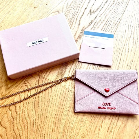 Miu Miu Heart Clutch er et legende og romantisk statement-piece, der indfanger Miu Mius karakteristiske blanding af ungdommelig energi og italiensk luksus. Den hjerteformede pung i blankt, rød laklæder har et iøjnefaldende krokopræget finish og er dekoreret med det ikoniske Miu Miu-logo i guld. Den gyldne kædestrop gør det nemt at fastgøre pungen til en taske, et bælte eller bruge den som et selvstændigt accessory – perfekt til mønter, kort eller små essentials på farten.
