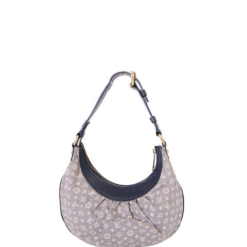 Smuk og afslappet Louis Vuitton Rhapsody taske i blågråt monogramstof med læderdetaljer og gyldent hardware. Den halvmåneformede silhuet og de feminine folder giver et elegant, men ubesværet look - perfekt til både hverdagsbrug og weekendture. Et let og rummeligt design, der balancerer luksus og funktionalitet.