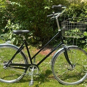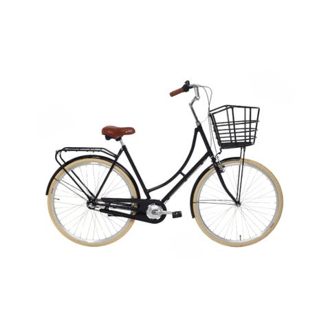NEXTER Tokyo (Mørkeblå) medfølger sort dæk, brunt håndtag og brun sadel som det ses i videoen. Kurv medfølger ikke.