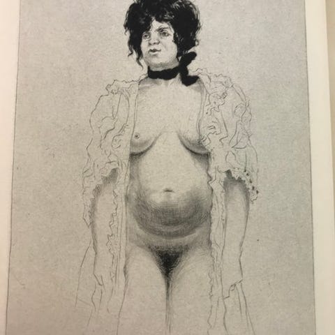 Ny udgave af Remy de Gourmonts roman, med et strengt begrænset oplag. En af de få 10 eksemplarer reserveret til forlæggeren, denne til hr. Paul Léautaud, med René-Louis Doyons underskrift på beviset.