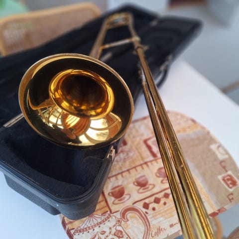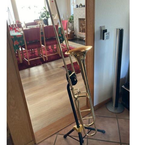 Messingtrombone model 42G med glide og twist, produceret i USA (Elkhart), serienummer 189422, højde 78 cm, bredde 14 cm, klokkevidde 21,5 cm, vægt 5 kg, meget god stand, testet og i funktionsdygtig stand, inkluderer original vognkasse, originale dele og to mundstykker (Vincent Bach 5G og 6-1/2A). Klik på den blå "gå til varen" knap, for at købe eller byde på denne vare. Den samlede pris vil blive vist inden du afgiver dit bud.