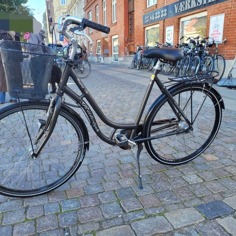 Sadel og håndtag er i sort og ikke i pink farve, kun dæk er i pink.