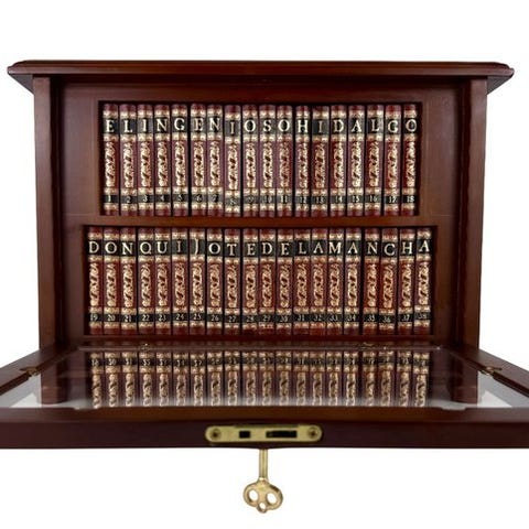 1.- Eventyr af Don Quixote de la Mancha; oversat fra spansk af Miguel de Cervantes Saavedra af Charles Jarvis, Esq. Illustreret af Gustave Doré. New York: Thomas Y. Crowell & Co., (188?). [1-3], 4-811 s. Forsidebillede, illustreret, 19,5 x 13,5 cm. Brun stofbind med brune bogstaver på guld