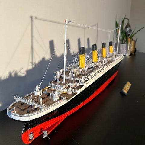 Modellen er fuldstændigt håndbygget i træ med talrige metaldetaljer såsom gelændere, davits, redningsbåde, master og den karakteristiske rød-sorte skorsten fra French Line.