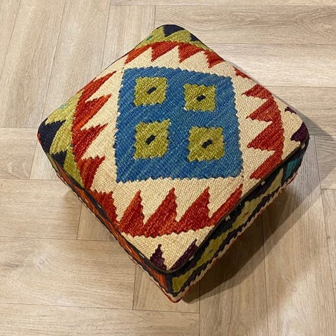 Denne autentiske puf / stol / sofa er lavet af 100% håndvævede Kelim, og benene er af træ. Meget ideel til din stue, soveværelse eller køkken. (Kelim er håndvævede tæpper lavet af uld og bomuld).