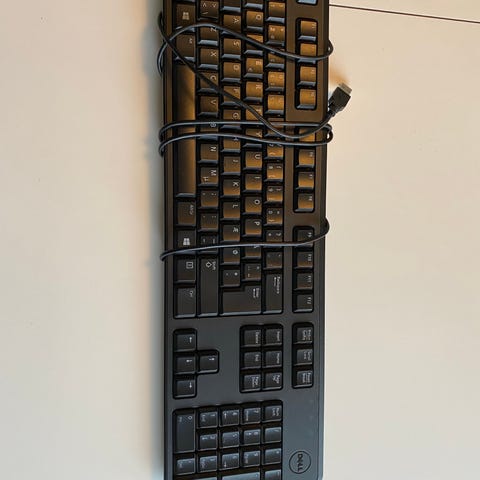 Dell KB216 tastatur med kabel. Sort farve. Standard layout med numerisk tastatur. Tilsluttes via USB-kabel. Velegnet til almindelig brug ved stationære computere.
