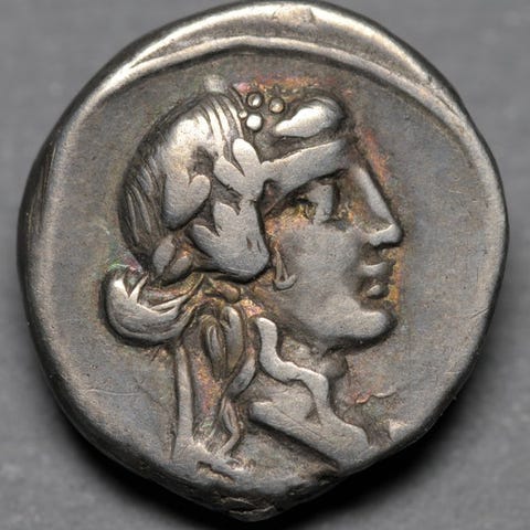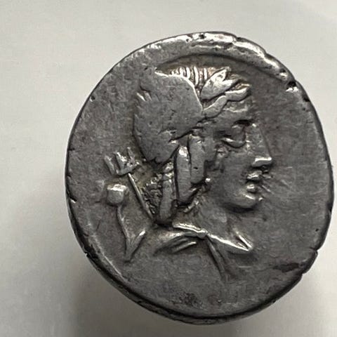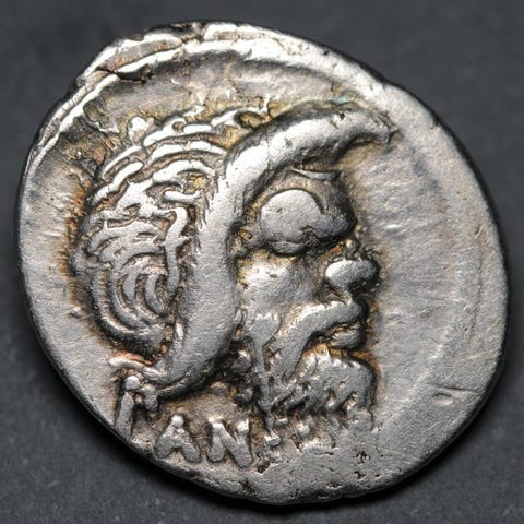 Q Titius Denarius. 90 f.Kr.