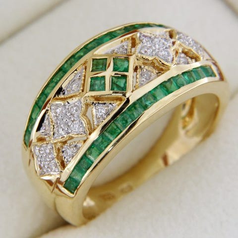 Ring - 18 kraat Gulguld, 18K gult guldring med smaragdskårne naturlige safire...