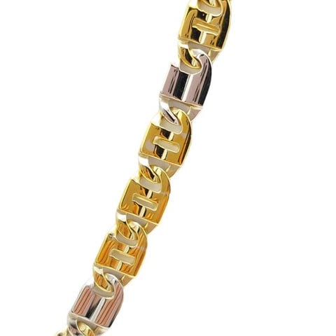 Kæde til kvinder lavet af gult og hvidt 18 kt. guld. Skjult lukning med yderligere sikkerhedslukning.