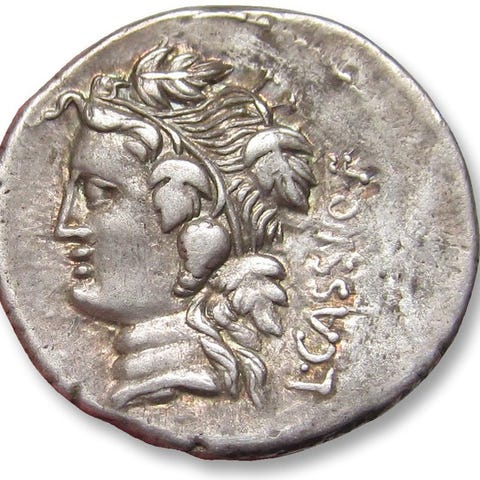 Romersk republik sølv denar fra Mn. Aquillius, præget i Rom omkring 71 f.Kr., vægt 3,85 g, diameter 20,50 mm, Crawford 401/1; Sydenham 798, VF+ med let stålgrå patina og let overflade ruhed ikke synlig for det blotte øje, obverse: Drape Virtus til højre i hjelm med fjer; reverse: en kriger står oprejst og holder et skjold og Sicilia hæves, Sicil i exergue. Klik på den blå "gå til varen" knap, for at købe eller byde på denne vare. Den samlede pris vil blive vist inden du afgiver dit bud.
