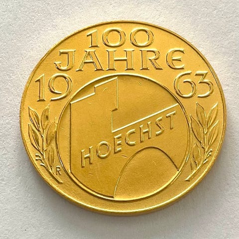 Tysk guldbadge fra 1969, Fischbach im Taunus (Neues Rathaus), 4,0 g guld 986/1000, i fremragende stand. Klik på den blå "gå til varen" knap, for at købe eller byde på denne vare. Den samlede pris vil blive vist inden du afgiver dit bud.