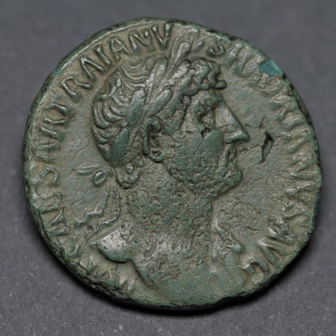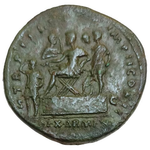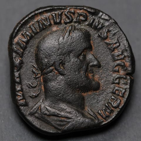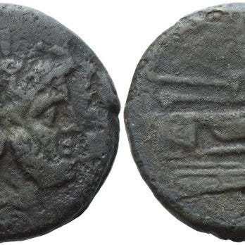 IMP PROBVS PF AVG, Probus-udgydelse med radié og rustning set forfra i 3/4 profil mod højre. (Kode Bastien: B)