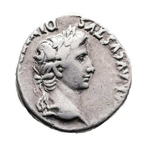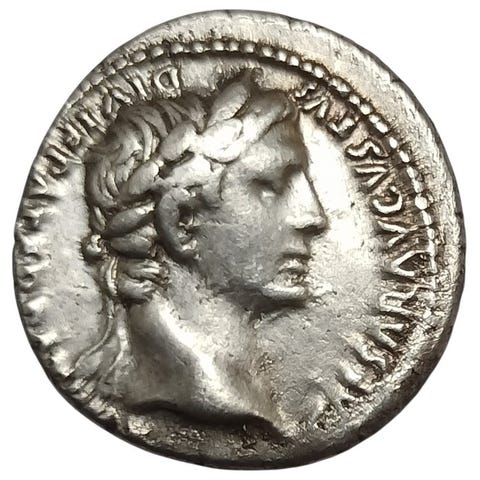 Romersk denar af Augustus, AR sølv, slået i Lugdunum (Lyon) ca. 2 f.Kr.–4 e.Kr.; vægt 3,86 g, diameter 18 mm, stand VF+ / EF− med stålgrå patina og antydninger af gylden iridisens; forside CAESAR AVGVSTVS DIVI F PATER PATRIAE, laurbærrygget hoved til højre; bagside AVGVSTI F COS DESIG PRINC IVVENT, CAESARES stående toga, hver foran et skjold; mellem dem lituus og simpulum. Klik på den blå "gå til varen" knap, for at købe eller byde på denne vare. Den samlede pris vil blive vist inden du afgiver dit bud.