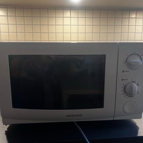 Hvid mikrobølgeovn med mekanisk betjening
