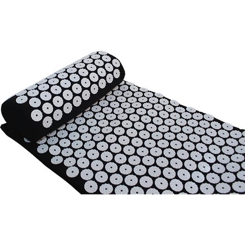 Vital Acupressure måtte og pude i lilla farve. Sættet består af en måtte og en pude med flere hvide akupressurspidser. Måtten og puden er designet til at stimulere trykpunkter på kroppen.