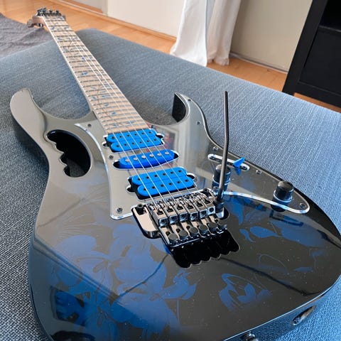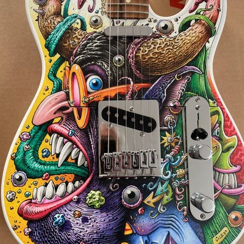 ★★★ 'Den uendelige guitar – sjælden kunstner-trykt Steve Vai signaturguitar,