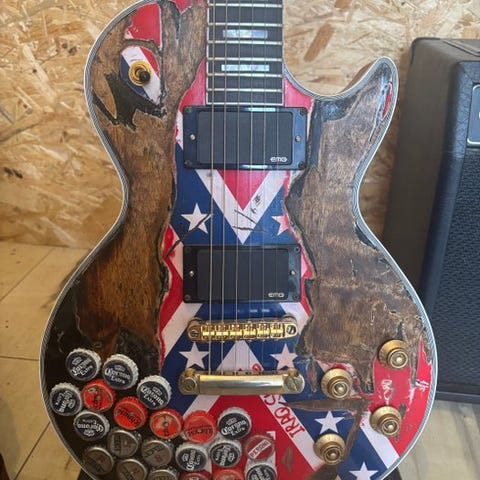 Steve Vai signaturguitar, enkelt stykke lavet i USA, i næsten som ny stand, håndsigneret og vist i en museums-lignende oplyst udstilling, inkluderer et ekstra objekt som beskrevet. Klik på den blå "gå til varen" knap, for at købe eller byde på denne vare. Den samlede pris vil blive vist inden du afgiver dit bud.