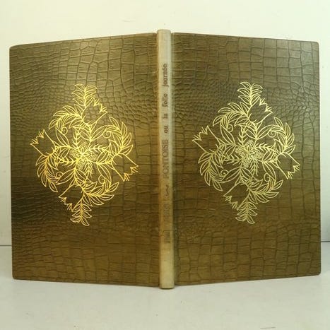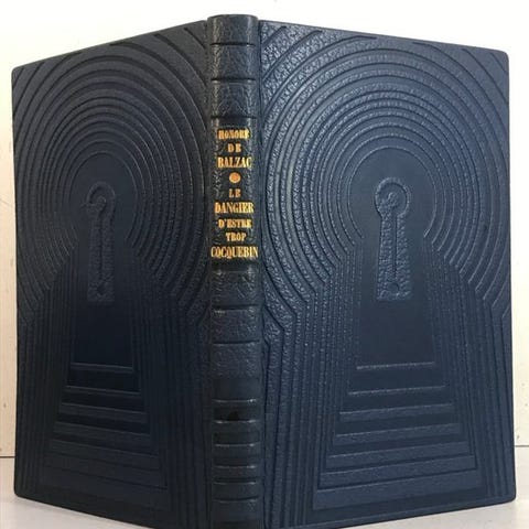 Forsynet med en bind signeret Robert Blaizot, smukt udført i fuldt brunt maroquin, ryg med nerver med titel og forfatter i guldbogstaver. Guldøverst på kanten, guldfillets ved snit ved hjørnerne. Flere fillets på forsiderne, gardiner og modplader forstærket med rosa