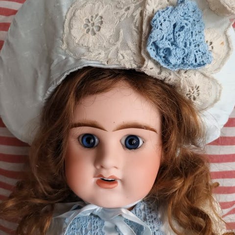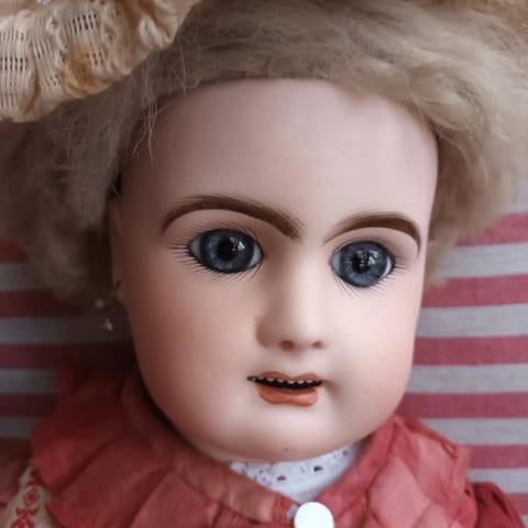 Tilstand: generelt fremragende. Hendes bisque er perfekt uden fejl eller restaureringer. Lille hvid fabrikationsplet på højre kind. Fingrene