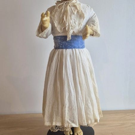 Antik fransk Eden Bebe skulpturbøsde i bisque, 58 cm høj, dating fra omkring 1890, i god stand med perfekt bisque og originalt halvledet krop, iført original bomuldspudekjole, kyse, undertøj og vintage røde læderstøvler, mærket Eden Bebe Paris M., i erstatningsemballage. Klik på den blå "gå til varen" knap, for at købe eller byde på denne vare. Den samlede pris vil blive vist inden du afgiver dit bud.