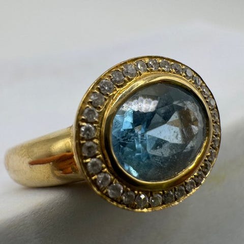 Ring - 18 kraat Gulguld - 0.03ct. tw. Diamant (Natur) - Akvamarin