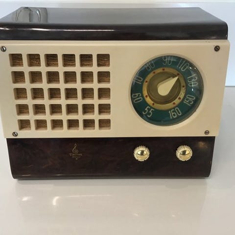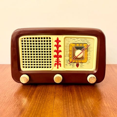 Denne sjældne, elegante og enkle engelske radio er blevet fuldstændig restaureret til en enhed, der er egnet til hverdagsbrug.